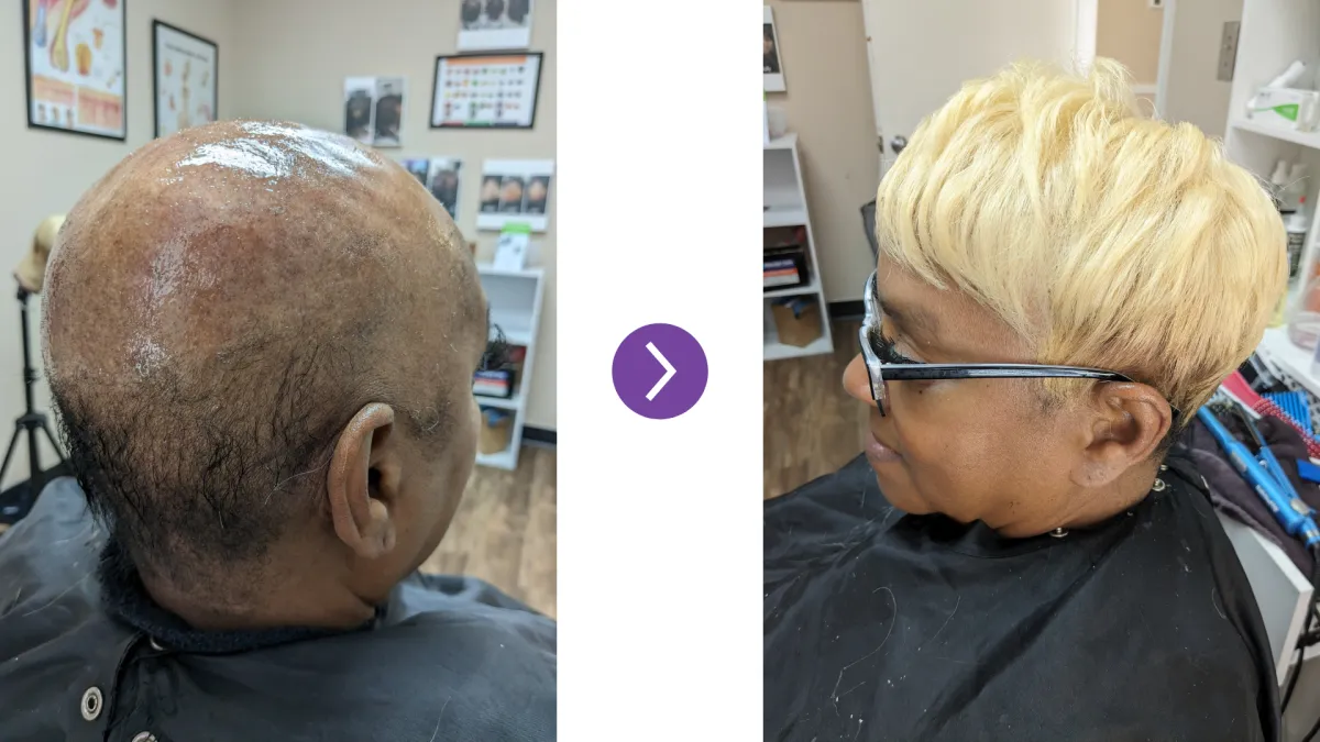 Non-Surgical Hair Replacement alternative customized to client's area of hair loss.